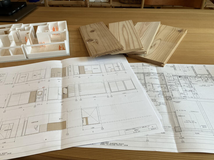 間取りは固まり、玄関タイルの種類・靴箱の段数・ドアの種類など、細かい部分を詰めている段階です。