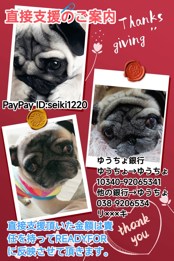 ※ご支援金はパブちゃんの治療代として大切に使わせていただきます。