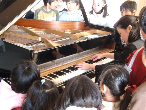 現在、全国の小学校では音楽専科の先生がいないことが理由で、音楽室でほとんど使われないままになっているピアノがたくさんあります。ピアノをプロが弾いたらどんな音がするのか知らない子ども、プロの演奏を聞いたことがない子どもたちがたくさんいるのです。