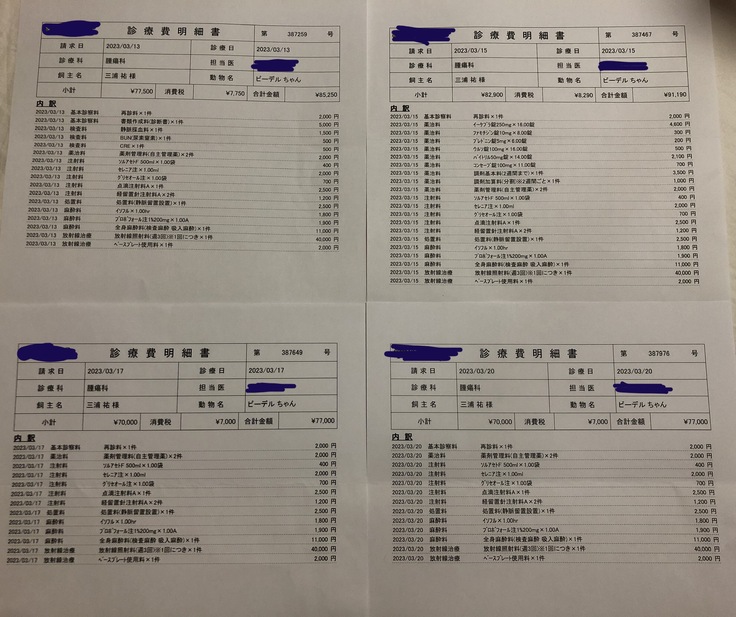 ▶︎ ページ上に掲載している診療・治療明細書などの資料は全て動物病院から掲載の許諾を得ております。