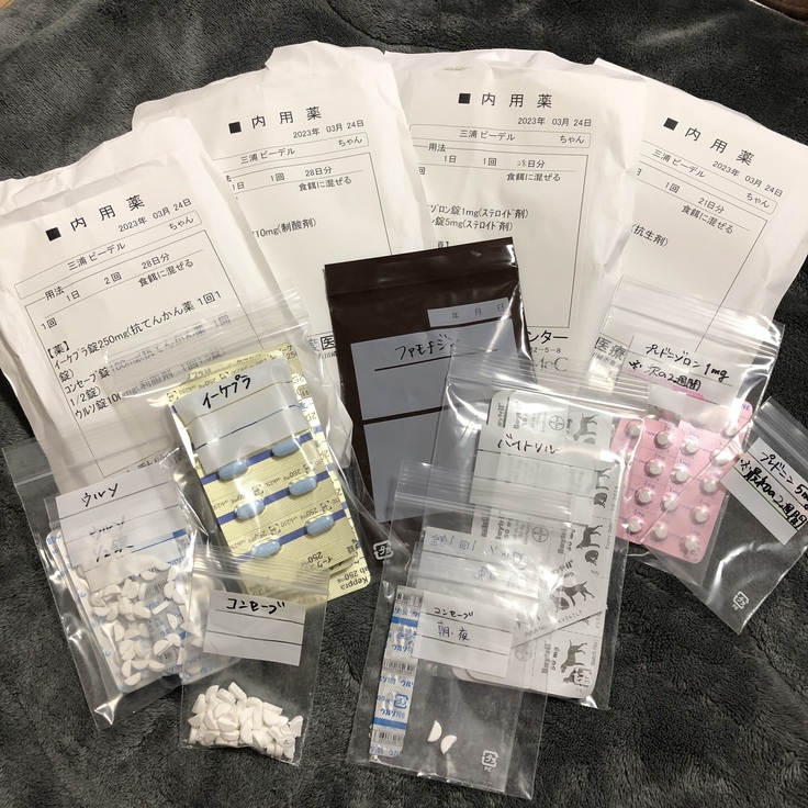 薬は、朝4種類+サプリ・夜は5種類服用しています。
