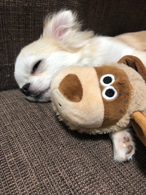 犬のおもちゃを買ってあげたのですが、気に入ってくれたようでよく一緒に寝るようになりました。