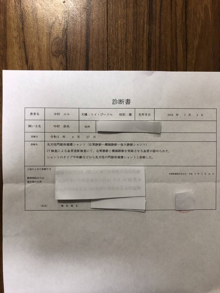4月27日に大学付属病院にてCT検査実施しました。門脈体循環シャントと確定診断されました。