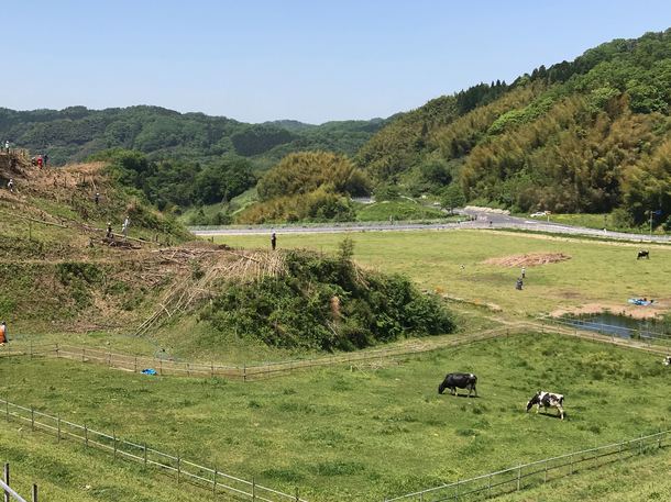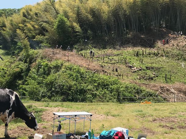 2017年5月14日、快晴の中、ダムの見える牧場で竹の焼畑が行われました。