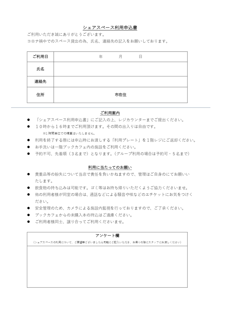 ※「レンタルスペース」は密を避けるため、1日3名様限定です