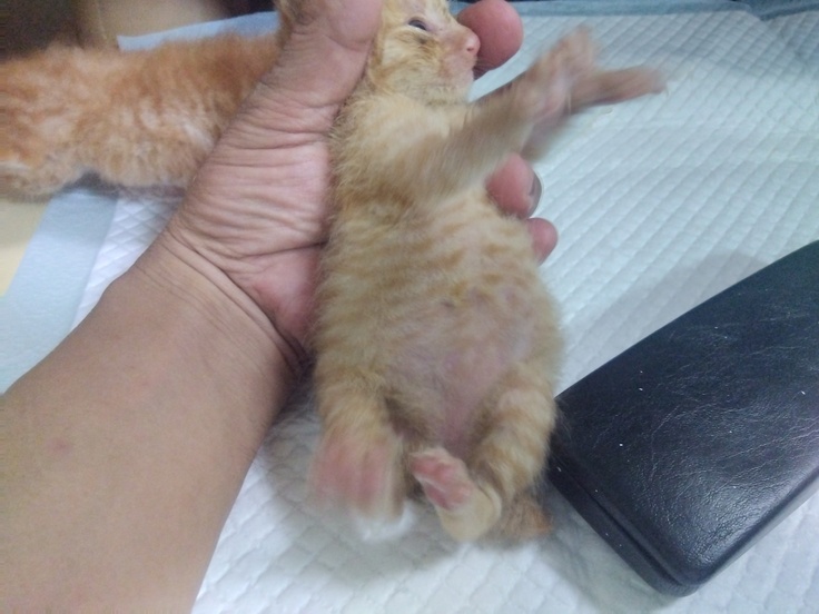 へその緒が付いた子猫の保護