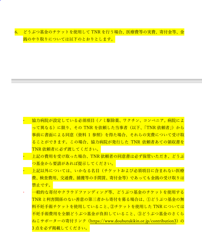 不妊手術時に付加的に発生する治療費・ワクチン接種等の実費を寄付金で行えるのと
