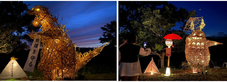 「西の湖 ヨシ灯り展」に毎年団体作品を出展しています。2年連続で「知事賞」をいただいています。終了後は図書館や庭園などあちこちから展示の依頼があり人気者となっています。