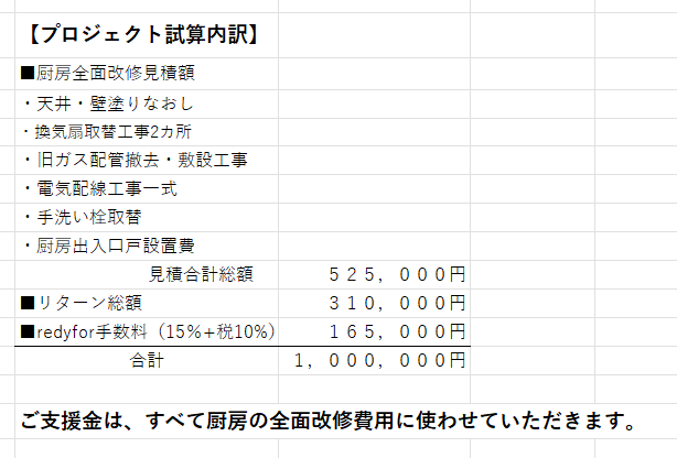 皆様からいただいたご支援や応援メッセージには、期待をしてくださっている思いが込められていて、私自身気持ちが引き締まる思いです。支援金はすべて厨房の改修費に充てさせていただきます。