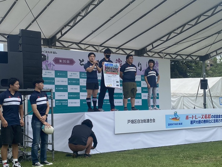 九工大ラグビー部は今回の会場であり、キャンパスもある戸畑の皆様ともワンチームになって戦っていきたいと思っています。今回のイベントで多くの方に知っていただけたと思うので、応援してもらえるように頑張っていきたいと思います!