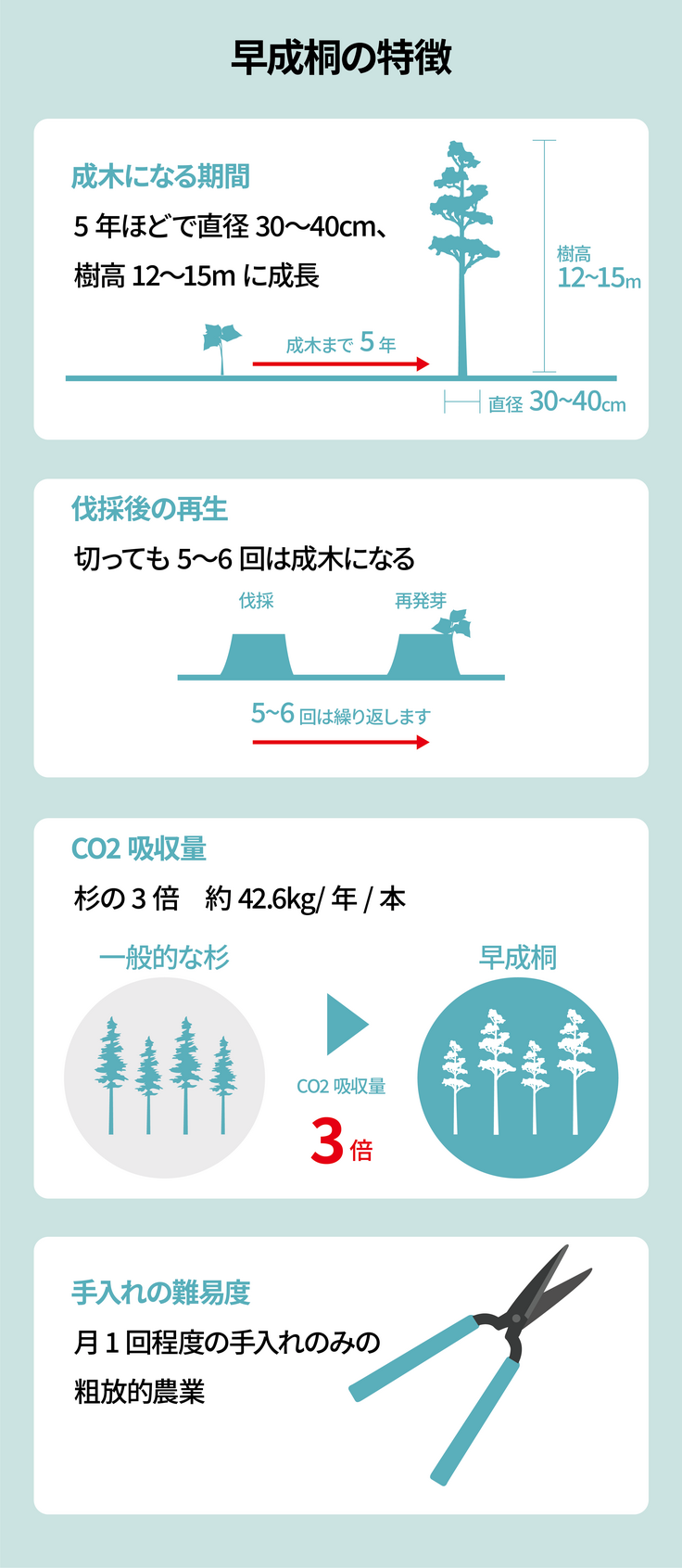 早成桐は、成長が早く、二酸化炭素をたくさん取り込み、