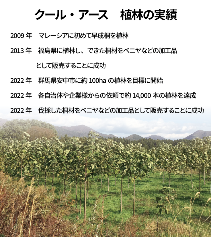 地球温暖化問題解決の糸口として始めた早成桐の植林ですが、