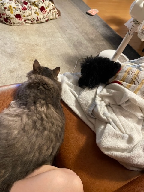 ベルちゃんの性格はとても優しく甘えん坊で、食いしん坊でもあり、イタズラ好きの男の子です。 病気になるまでは、ぬいぐるみをとってはドヤ顔で私の所まで持ってきたり、夜は毎日私のお布団で一緒に寝たり、ごはんを求めて可愛くにゃーと訴えてきていました。笑