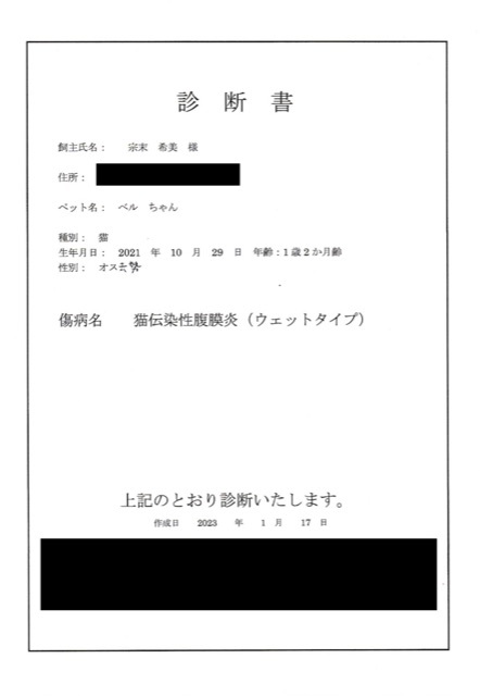 FIP(猫伝染症腹膜炎)と戦っているベルちゃんを助けて下さい!