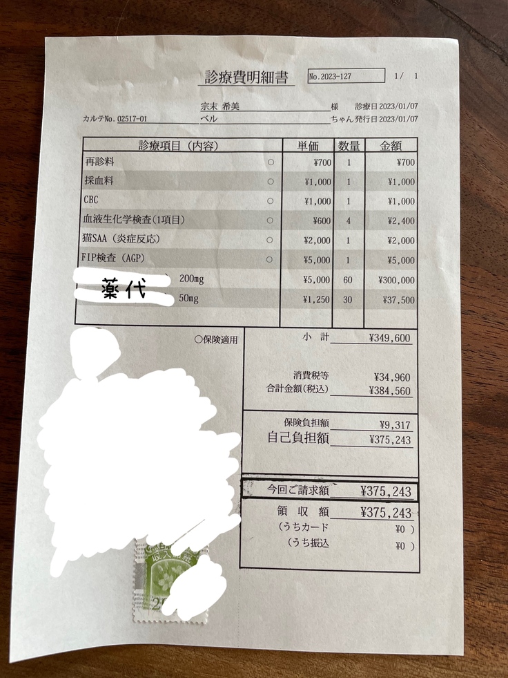 ですが、FIPの薬は保険等が効かず沢山のお金がかかります。