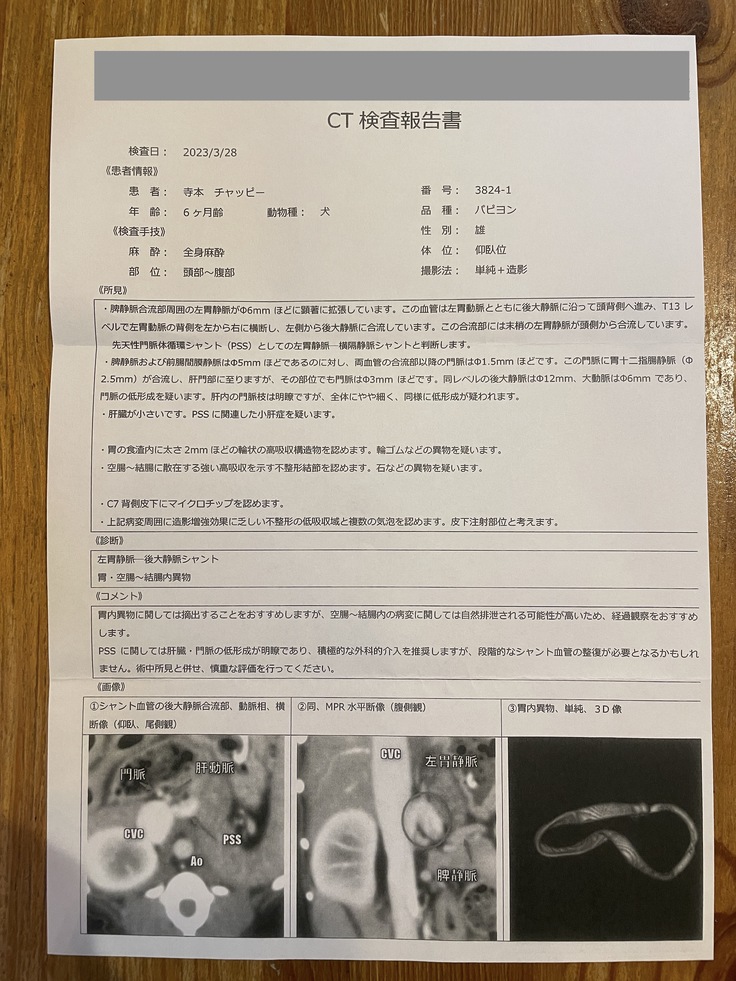 ・ご支援いただきました資金は全てチャッピーの門脈体循環シャントに使用させていただきます