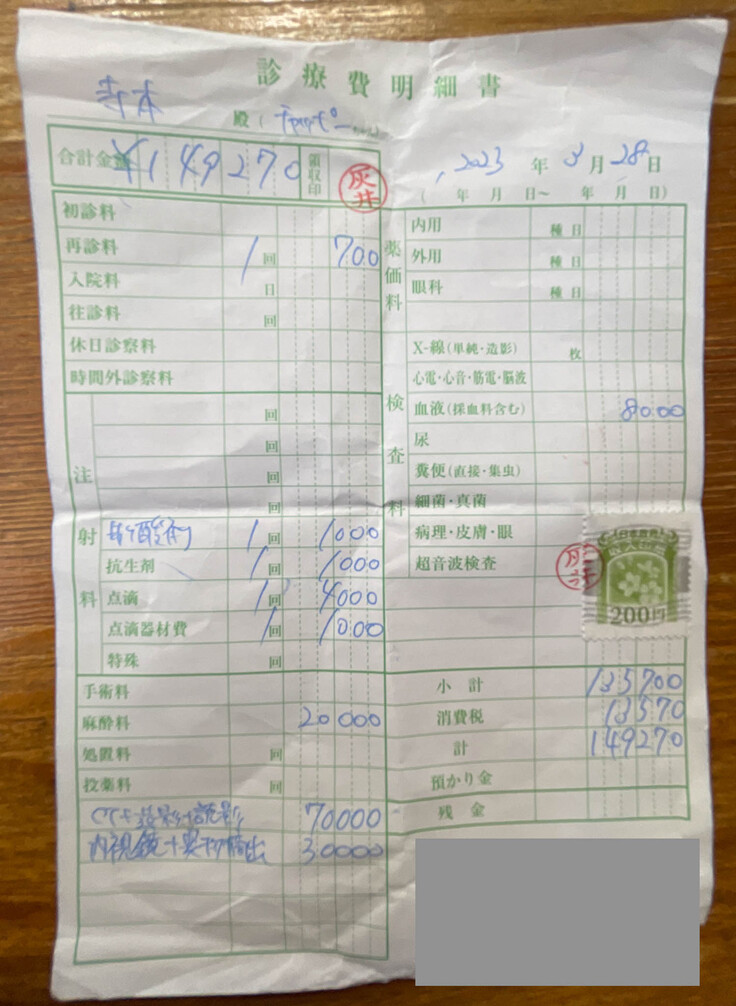 ※獣医師の説明によれば術後の合併症リスクがある手術となりますということでしたが、まだ不確定要素なので(起きないことを祈る思いもあり)その分の費用は見ておりません。発生した場合は自分たちで準備位たします。