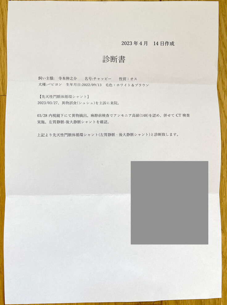 2023/4/11 先天性門脈体循環シャント と診断されました