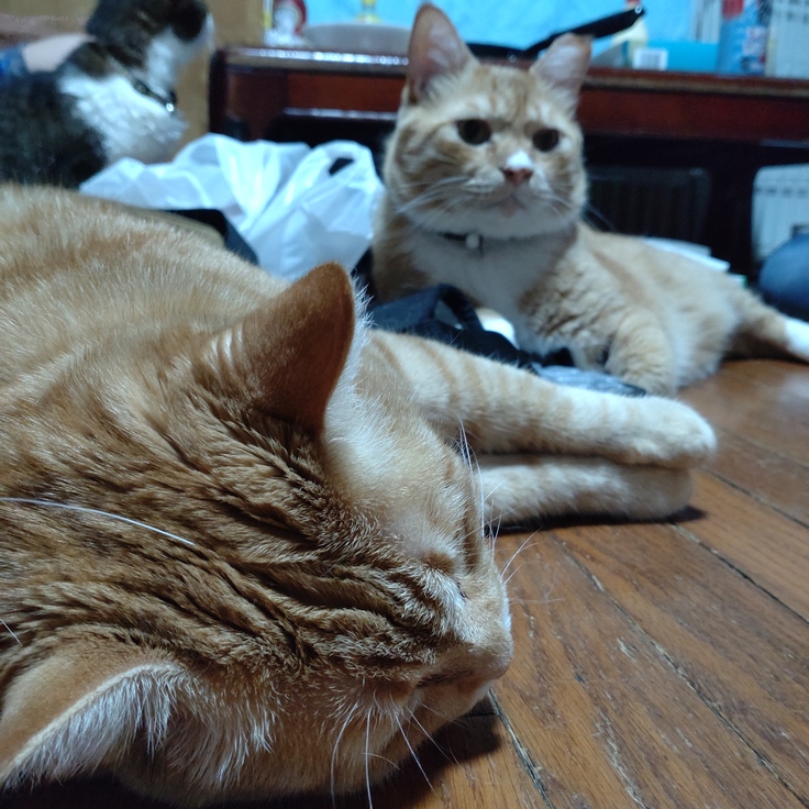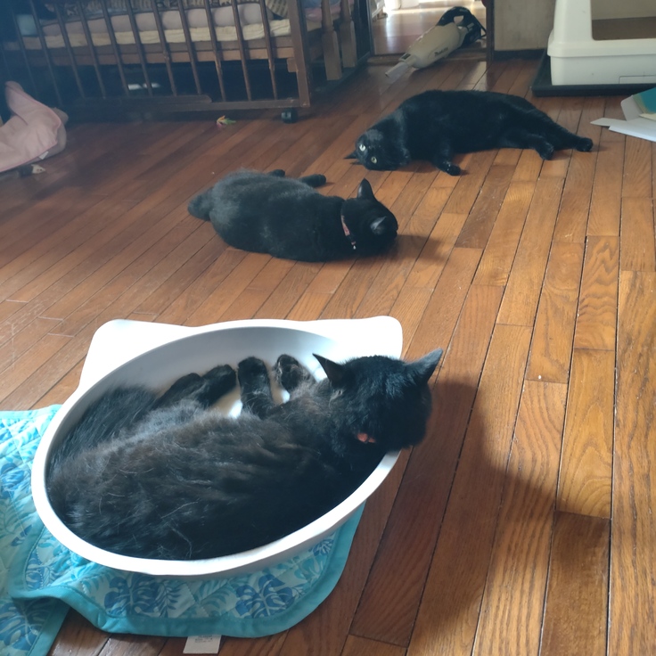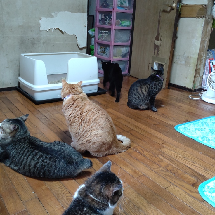 我が家 唯一のエアコンのあるリビングに集まる ニャンズ😺