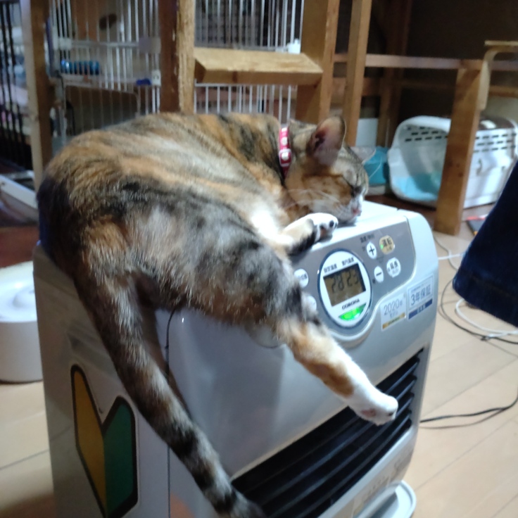 毎冬 ヒーターの上が定位置状態に😅