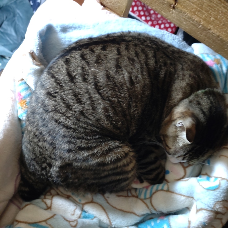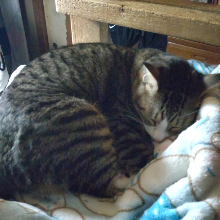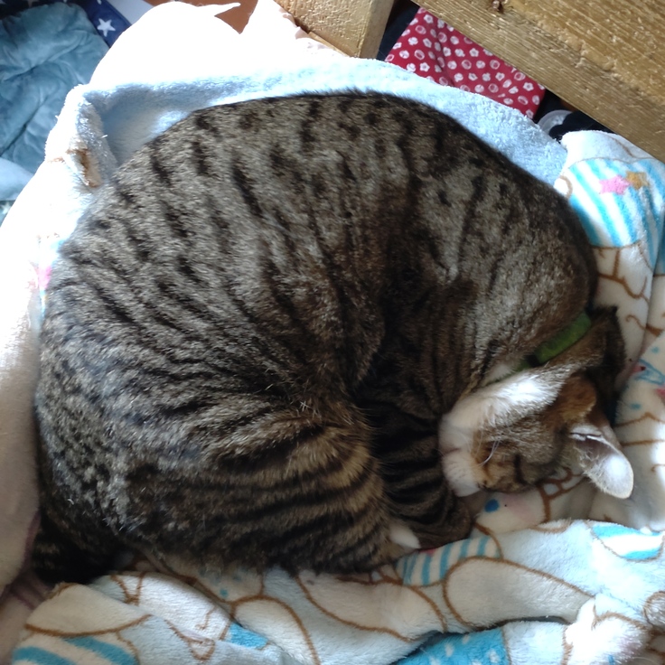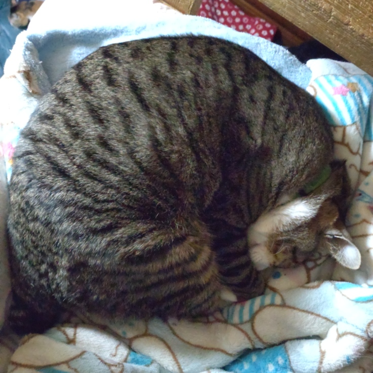 普段は の〜びのび で寝ているのに………