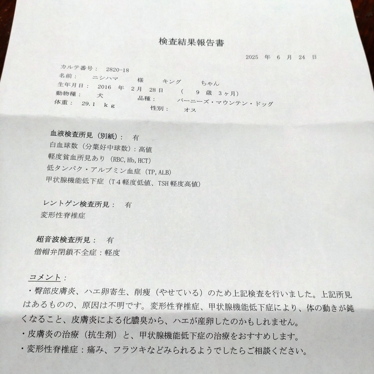 心音異常 痩せ型等から腫瘍の疑いもあり