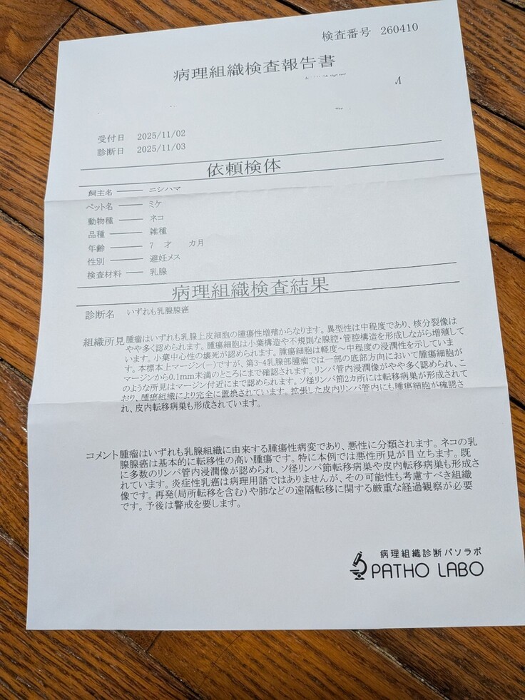 ミケちゃんの体調を考慮しながら決めて行く事になりました。
