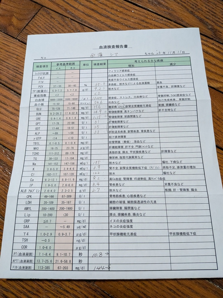 レントゲン検査 血液検査の結果