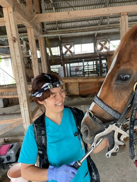 馬は蹄の保護のため靴を履くのですが、大きな体を4本の華奢な足で支えているので、その馬にあった靴を鉄とかアルミとかでオーダーメイドしてくれるんです。足と歯がきちんとケア出来てないと、ほかのケアが生きてこないと言われるほど、とてもとても重要なお仕事です。