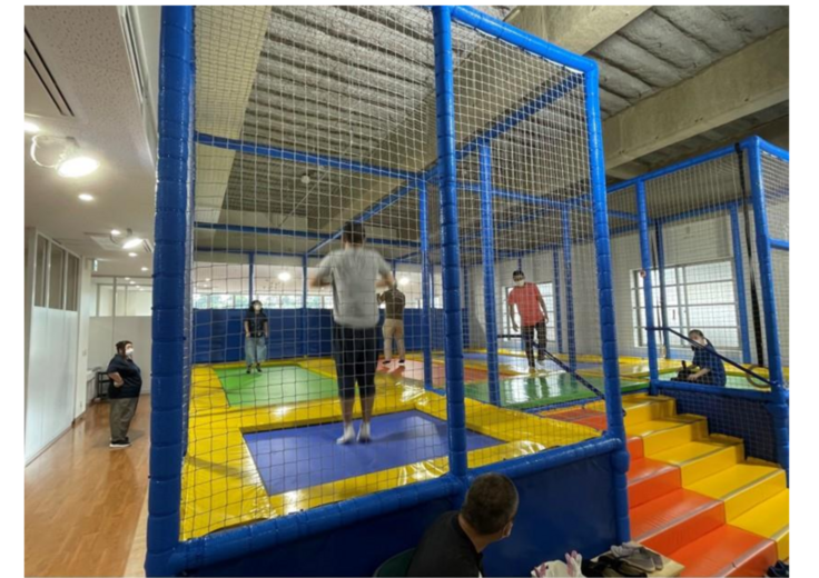 トランポリンは、若者は普通に飛びますが、高齢者は5mのロング面を歩きます。前後歩きもします。大人がトランポリン上を自由に歩ける施設は余りありませんので、今後この点をもっともっと広めていきたいと思っています。