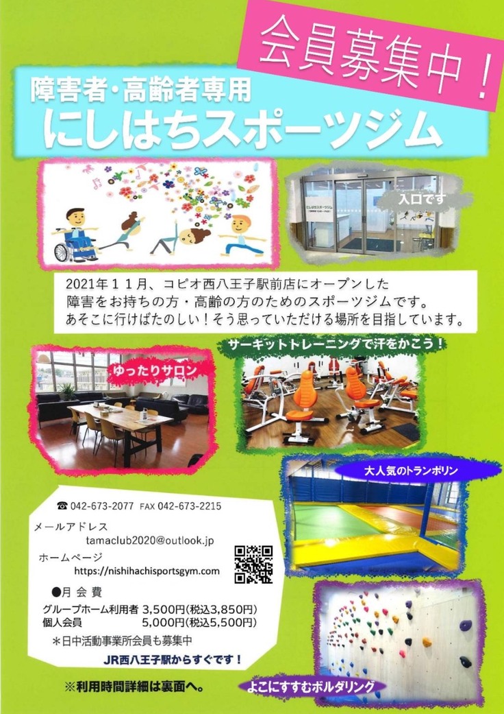 一般社団法人たま俱楽部2020は、障害者専用スポーツジムをオープンする事を目的に、ちょうど今回の東京オリンピックが開催される予定だった、2020年に設立しました。そして、その時の初心を忘れないため、法人名に2020を付けました。1年半の準備期間を経て翌2021年11月、JR西八王子駅近くのスーパーアルプス2階にて無事オープンすることができました。今では、運動不足解消だけではなく、障害者・高齢者にとって大切な居場所となりつつあります。
