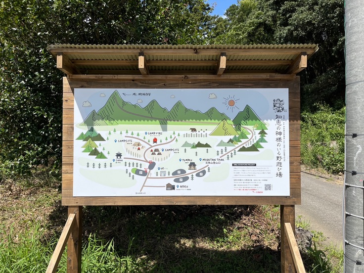 キャンプやイベントにお越し頂いていたお客様から「付近の設備や場所や登山口との位置関係が分からないです」という声を頂いていたこともあり、駐車場にマップを作りました。このマップを作ったことによりキャンプサイトやバーベキューサイトの場所やトイレの場所が分かりやすくなりました!