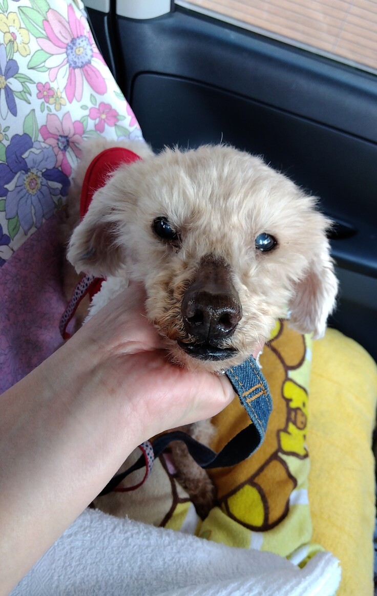 今年の3月末に、推定15歳のトイプードルらい君は当施設に来ました。