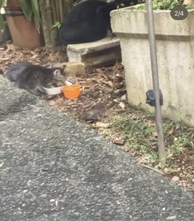 一度家の中に戻って、他の場所の子達のご飯をあげにいこうとしたところ