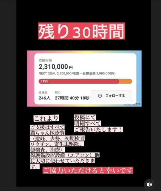 全て猫ちゃんの医療費、お部屋設備、他に大切に使わせていただきます!