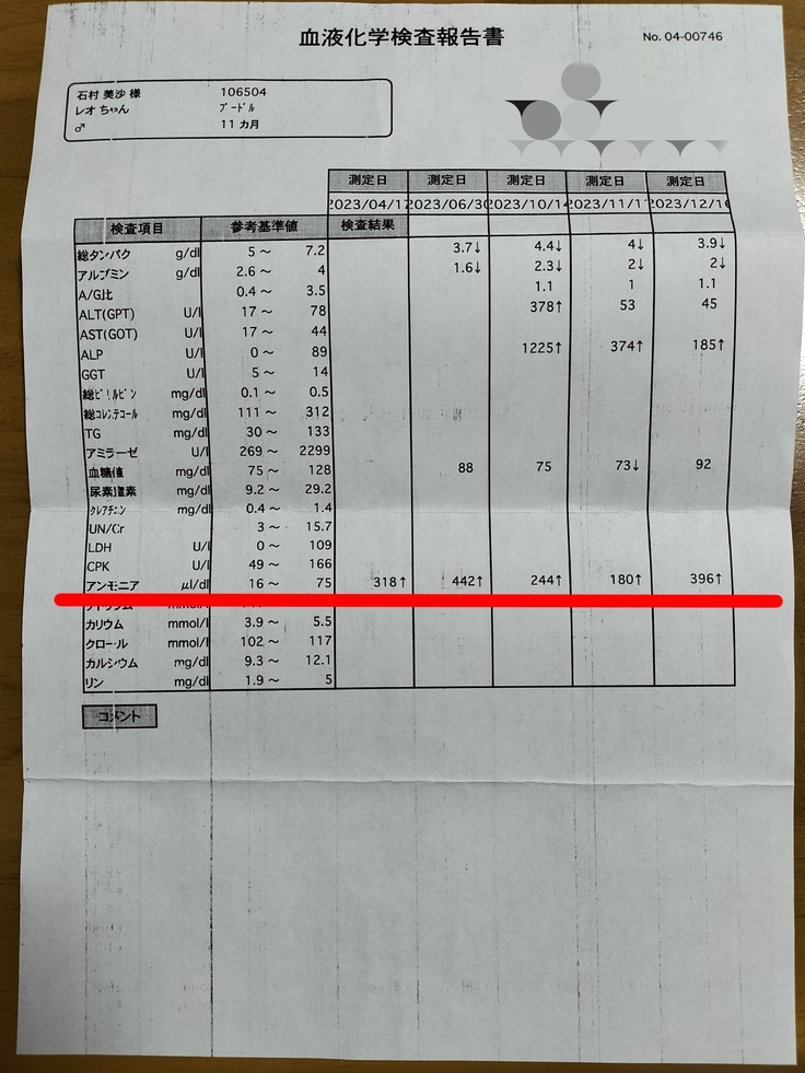 定期検診に行ってきました。血液検査をすると、アンモニアが1ヶ月前の2倍以上の高い数値になっていました。主治医より、再び肝性脳症を起こす恐れがあると言われました。容態が急変した場合には、すぐに連絡をするようにと指示を受けました。手術まであと1ヶ月。れお、頑張れ。パパ達も細心の注意を払うようにするからね。