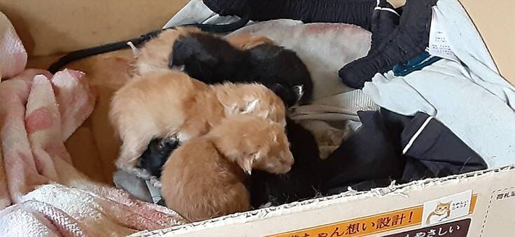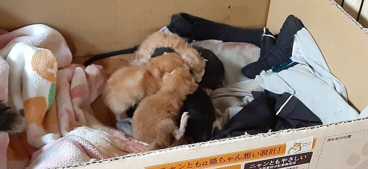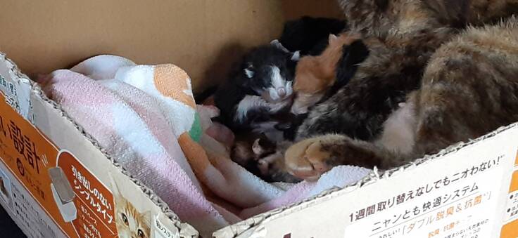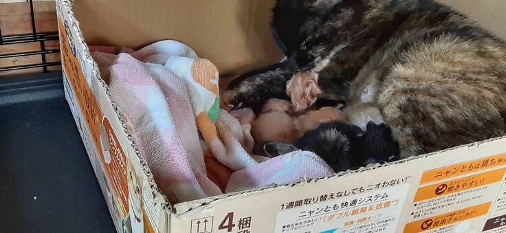 早朝、覗いてみると6匹の子猫を無事出産していました!