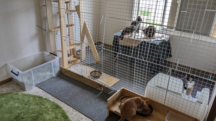 オス猫に発情が来たため、急遽部屋を半分に分けました。