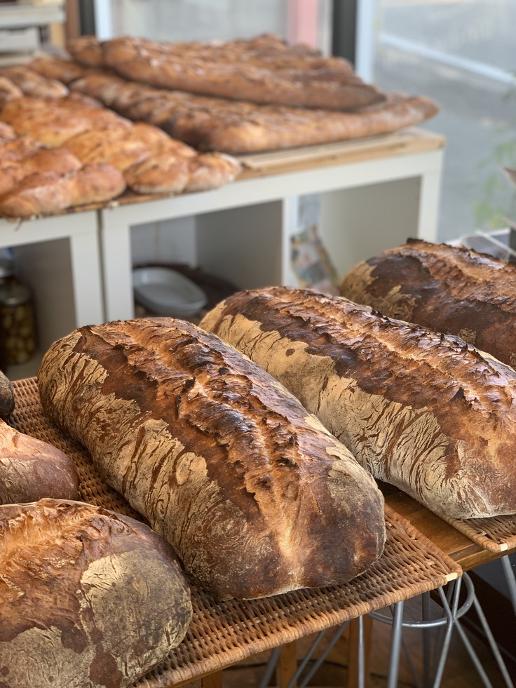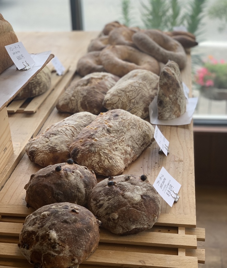 現在は、農家さんから頂く有機栽培の小麦粒を自家製粉した全粒粉を始め、有機認定を受けた素材を中心に、健やかさに重点を置いた素材選びと製法で、素朴で味わい深い食事パンやお菓子を焼いています。