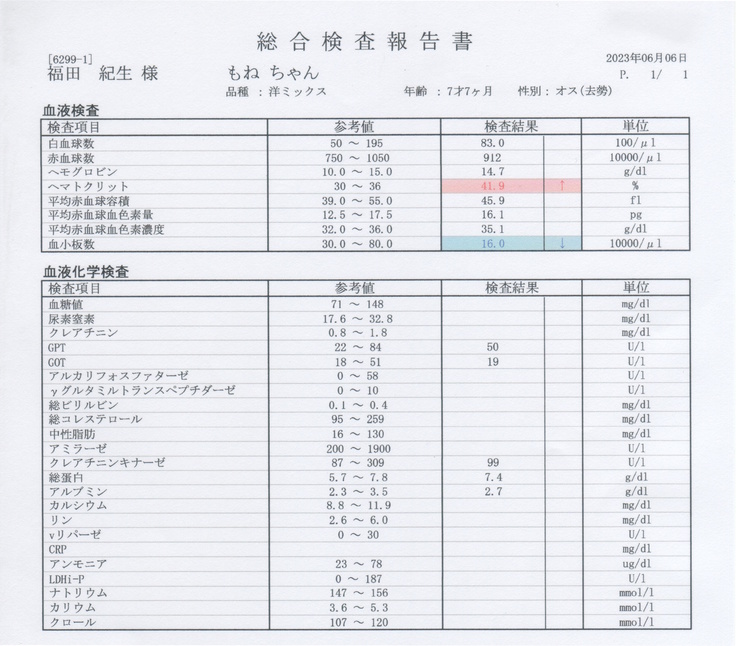 血液検査の値も良好で次回の通院は少し間隔を開けてもいいだろうとのこと。