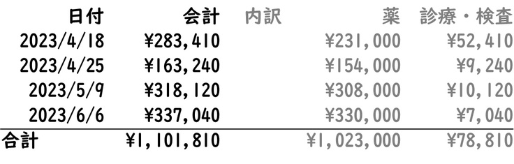 まだ次回の検査こそありますが、以下にいったん会計をまとめてみました。
