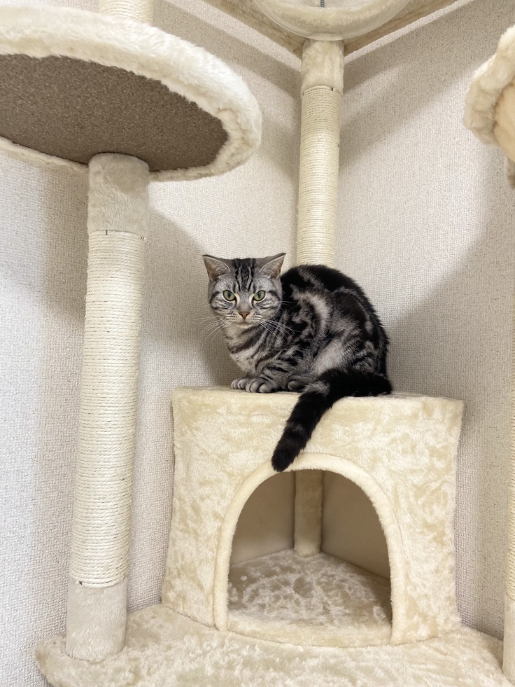 買っておいたキャットタワーに自分から登ってくれました😭😭💗
