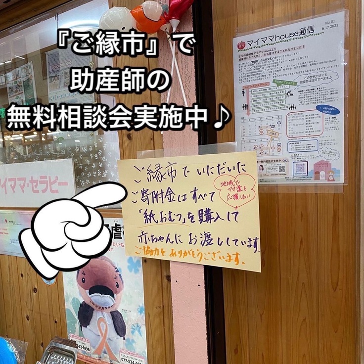 ご縁市でいただいた寄付金を紙おむつの購入にあて、その時に助産師がお話をお伺いします。