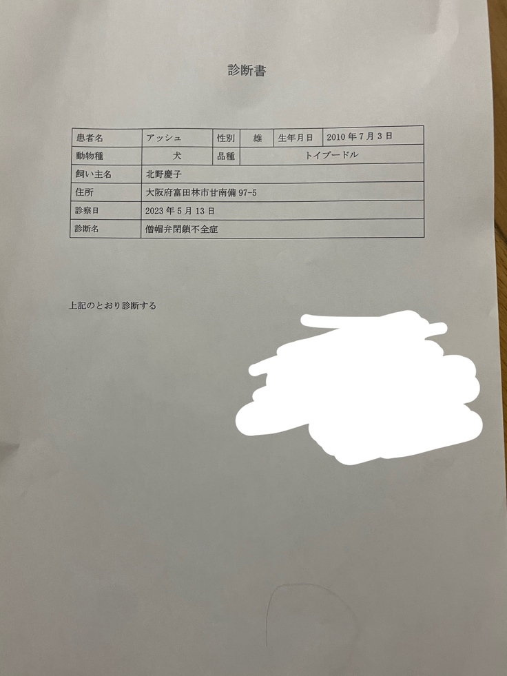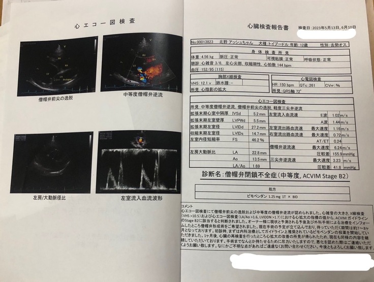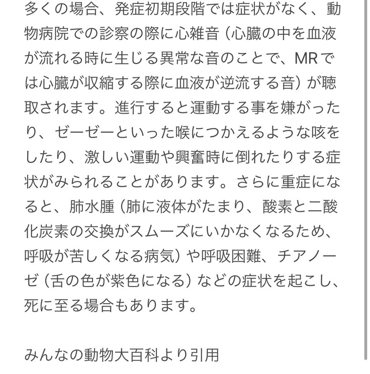 心臓の雑音があると言われ、僧帽弁閉鎖不全症と診断されました。