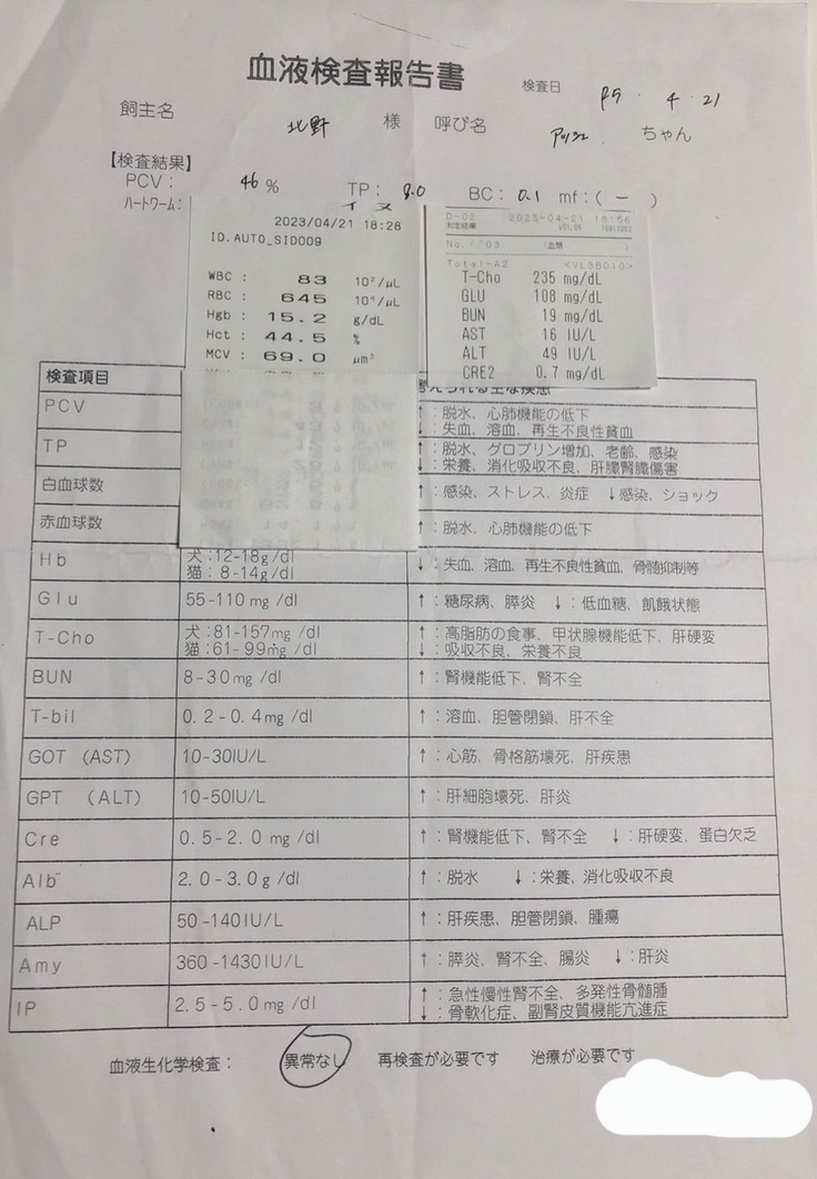 食欲があるのにどんどん痩せていき咳が増え、2023年4月21日に病院へ行くと