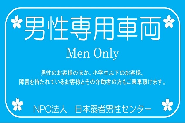 活動趣旨に賛同される方は性別年齢問わず大歓迎です。詳しくはこちらのページをご覧ください→NPO法人日本弱者男性センター男性専用車両特設ページ