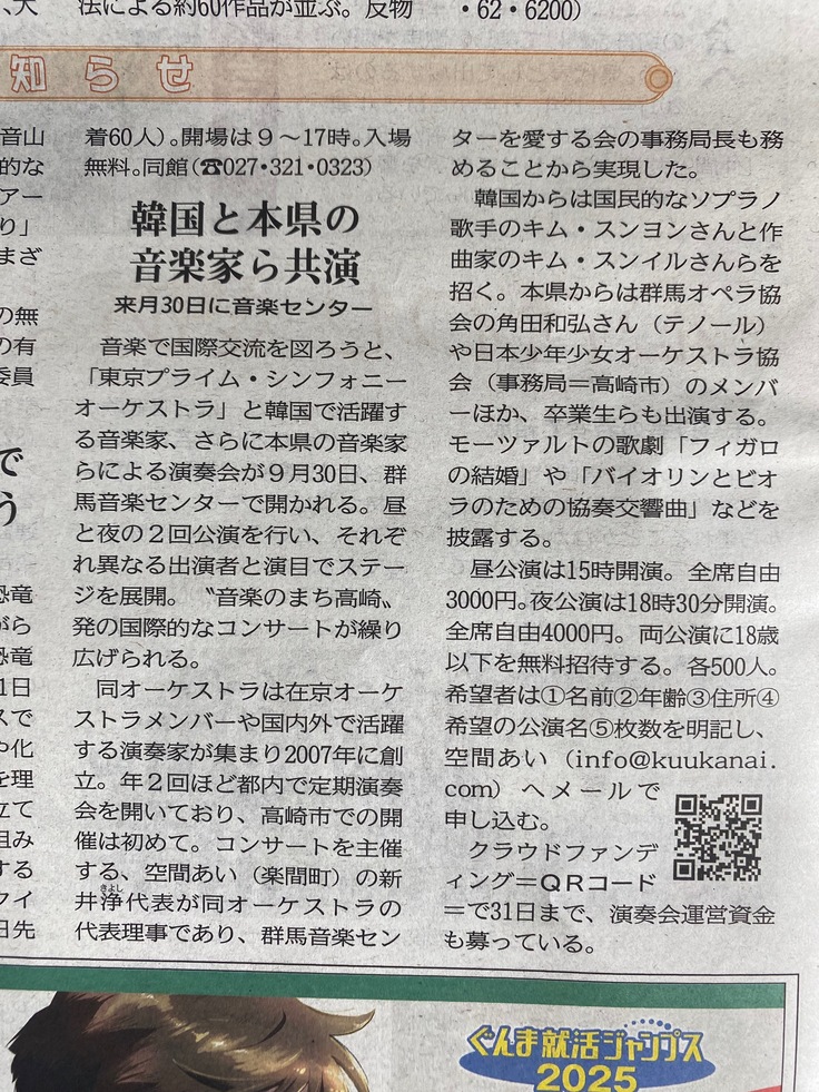 タカタイ(上毛新聞、高崎の生活情報紙8月18日)に掲載していただきました。