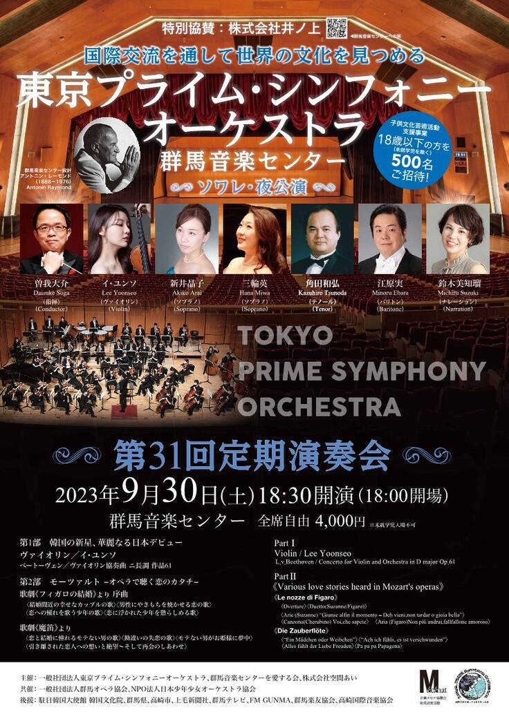 主催:一般社団法人東京プライムシンフォニーオーケストラ・ 群馬音楽センターを愛する会・株式会社空間あい・ 共催:一般社団法人群馬オペラ協会、NPO日本少年少女オーケストラ協会