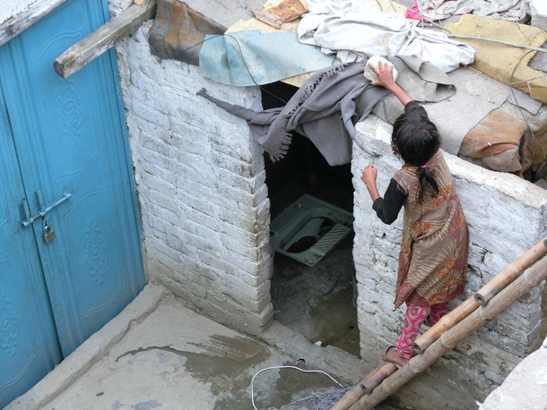 日本の”ぼっとん便所”と同じですが、違う点はバキュームカーが汲み取りに来ないこと。