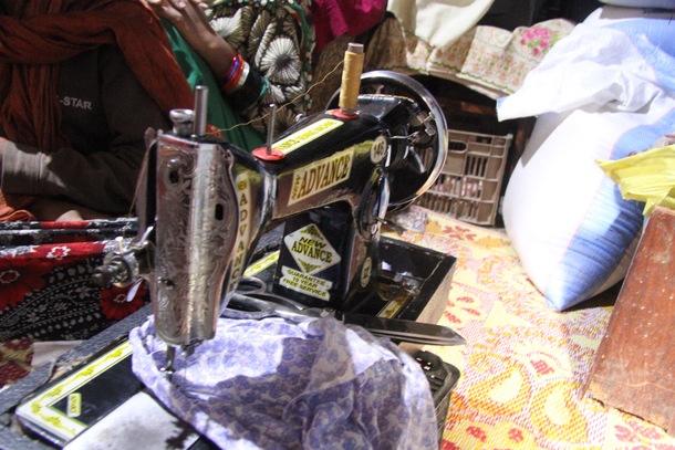 右:学校で使っているのは手動ミシン。学校オープンにあたって、4台の手動ミシンを用意しました。
